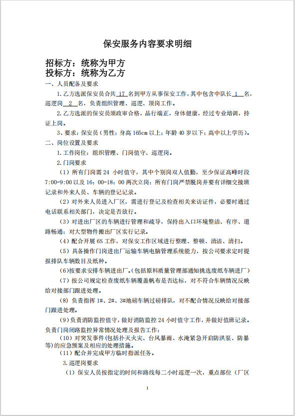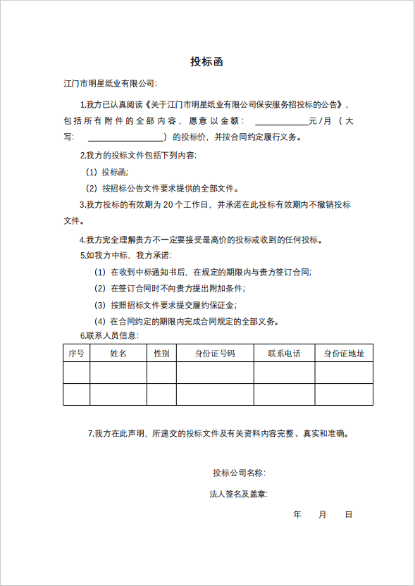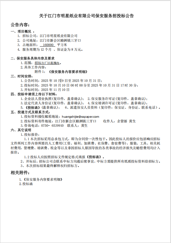 2025《江门市明星纸业有限公司保安服务招投标公告》